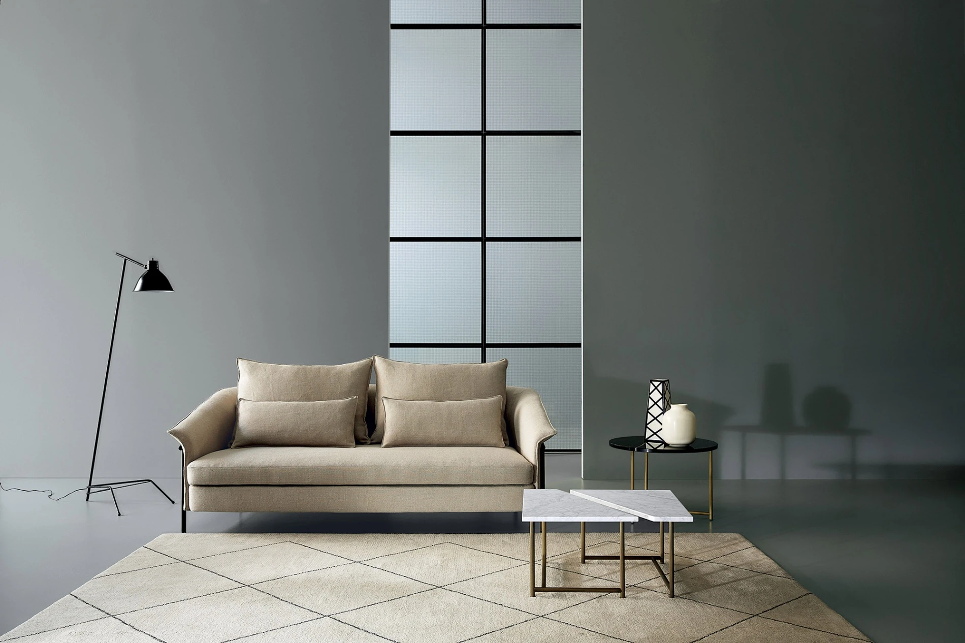 A natural evolution of the eponymous armchair, Kite Sofa is fit for a living space with its plastic shape resembling a seashell. With its compact outline, Kite Sofa unveils its refined details to a keen eye: balanced thicknesses, accurate proportions and the elegant curve of the tubular structure that encircles its internal padding.