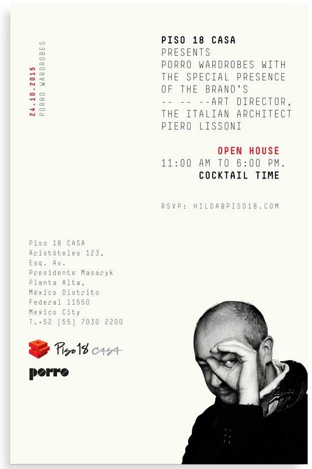 Porro promotes an event dedicated to its art director Piero Lissoni on the occasion of Design Week Mexico, the platform spreading the culture of design in Mexico through a week of various events for community members, architects, industrial, graphic and interior designers and students, as well as design-lovers and the general public.