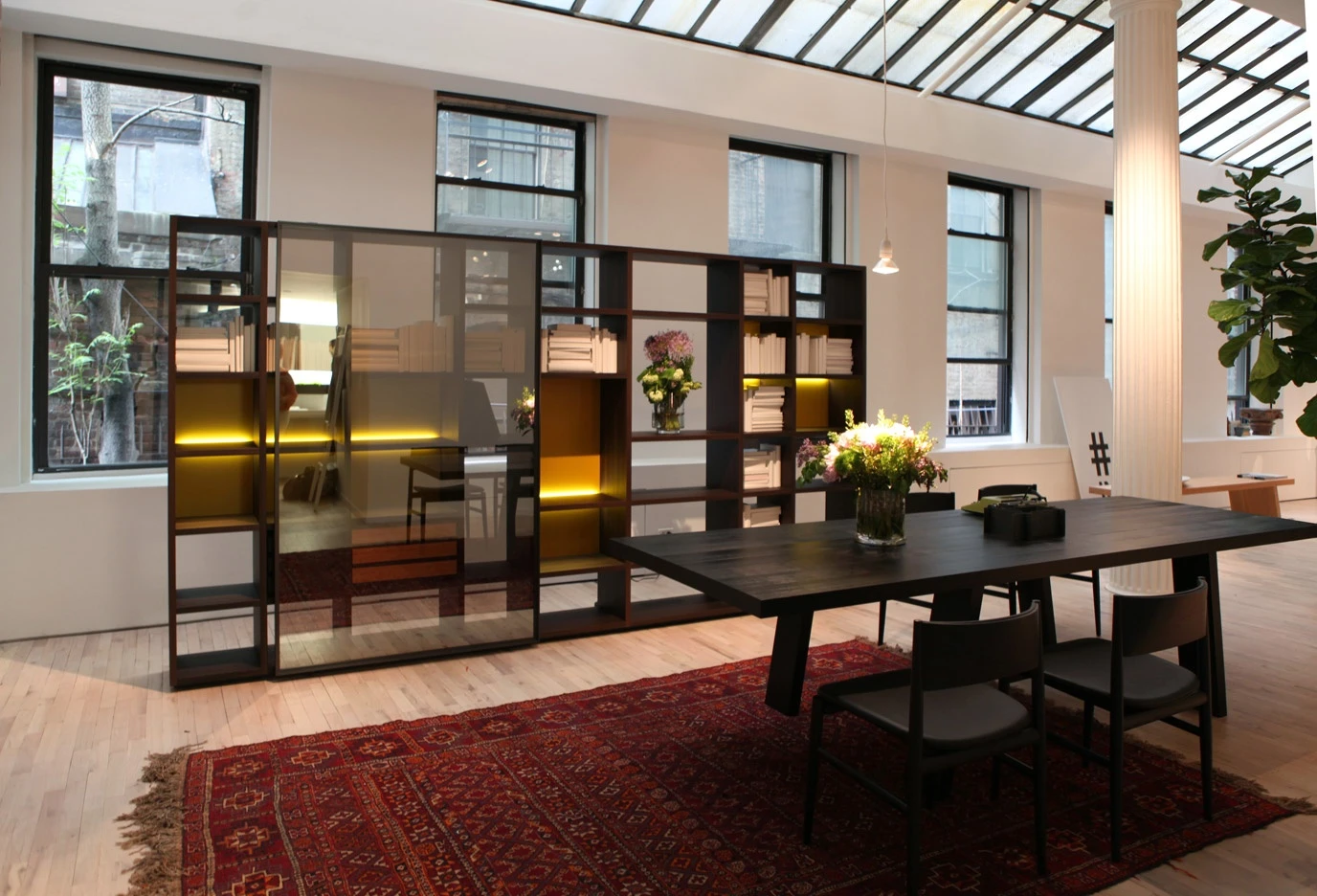 Porro introduced its new exhibition space in the Big Apple during the ICFF, America’s leading contemporary furniture show. Located in the heart of SoHo, at 21 Greene Street, Studio Anise is an elegant, international space that offers a comprehensive, new showcase of Porro products. This is the ideal setting for Porro’s elegantly functional furniture systems for the office and the home, including both the living area and the bedrooms. The varied selection features Modern system of containers and shelving, System modular bookcases, and Storage system of wardrobes and walk-in closets, as well as beds, containers, bookshelves, chairs, tables, complements and accessories.