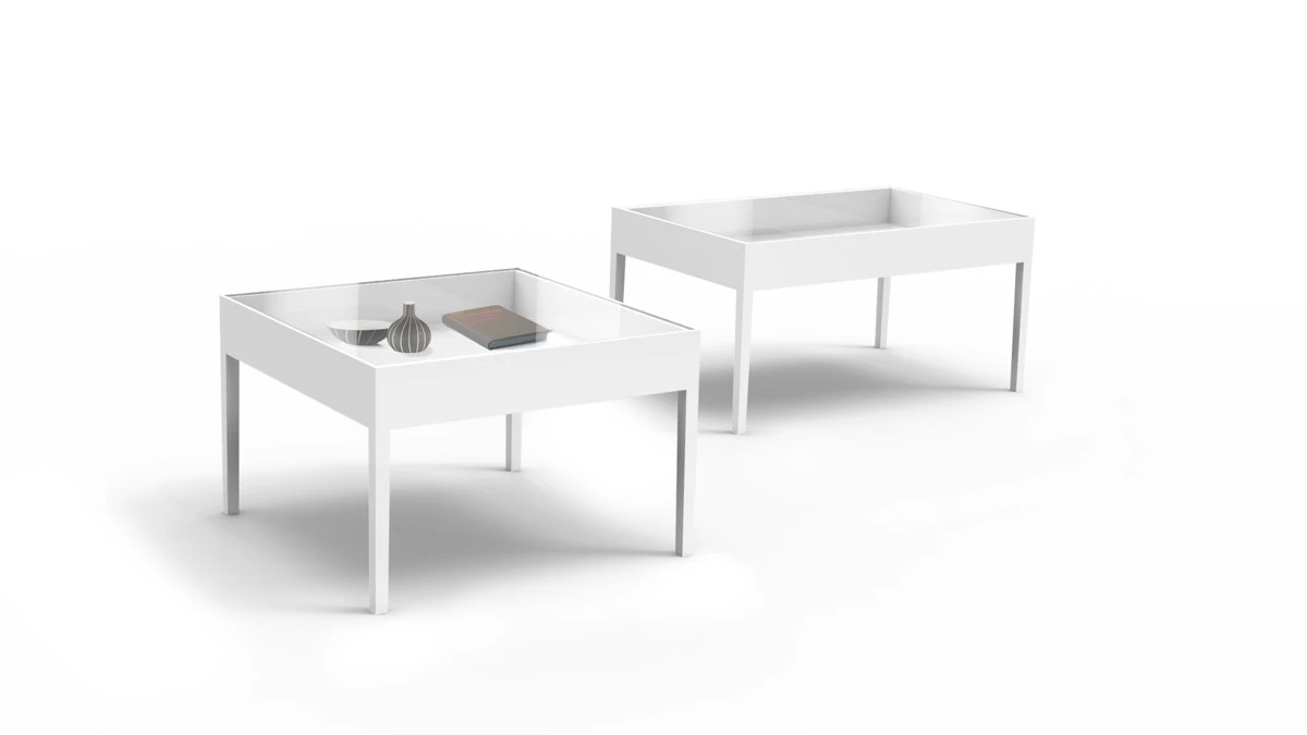 Work continues alongside the Fronts, the 3 Swedish designers with whom the company has worked since 2009, specialists in reconciling Porro’s formal simplicity with a design rich in suggestion. The first piece of the 2011 collection to be presented is Sundial, a wall clock that stands out for its circular form and glowing albescence. A metal disk 55 cm in diameter presents the twelve hours applied perpendicularly to the plane of the disk so that they can only be read via the shadows they cast on the white surface. An innovative concept: when viewed from the front it is transformed into a composition of parallel lines, while from the side it becomes a captivating superimposition of numbers. Another project preparing for its debut is the Showcase Table: a coffee table / bedside table with graceful lines and a double top acting as a glass showcase for the objects that populate one’s daily life—books, eyeglasses, fruit—putting them on elegant display and elevating them to the status of art. Available in 2 formats, square or rectangular, it’s made up of an upper glass top and an inferior pullout surface in white lacquer, as its bearing structure, a real secret drawer hidden behind its apparent simplicity.