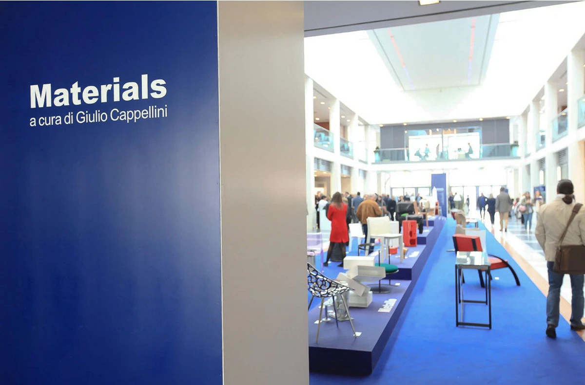Balancing Boxes small table designed by Front for Porro selected for the Materials exhibition curated by Giulio Cappellini in the large aisle between halls 10 and 11: a unique path through products made of various materials.