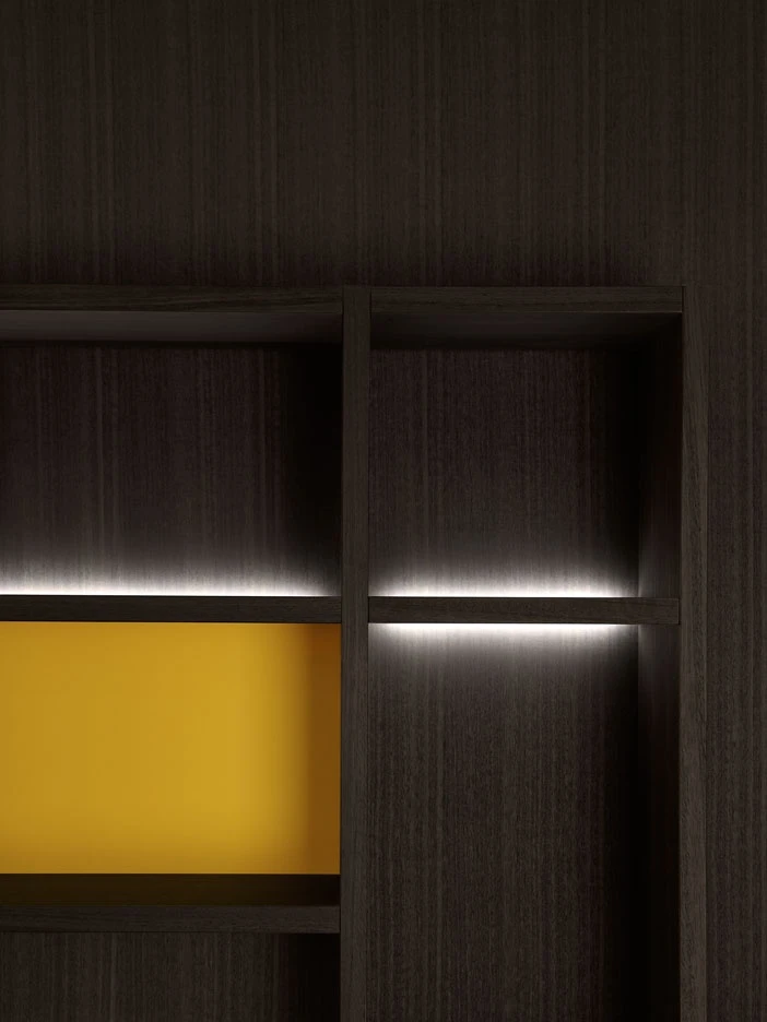 A welcoming and cherished refuge, a place to rest and relax amidst the warmth of wood and the purity of Porro lacquer – the wardrobe has expanded to become a room in its own right, an American-style dressing room, where one can focus exclusively on oneself, where men can choose a suit and care for shoes and ties, and women can take pleasure in putting on make-up or creams in front of the mirror.