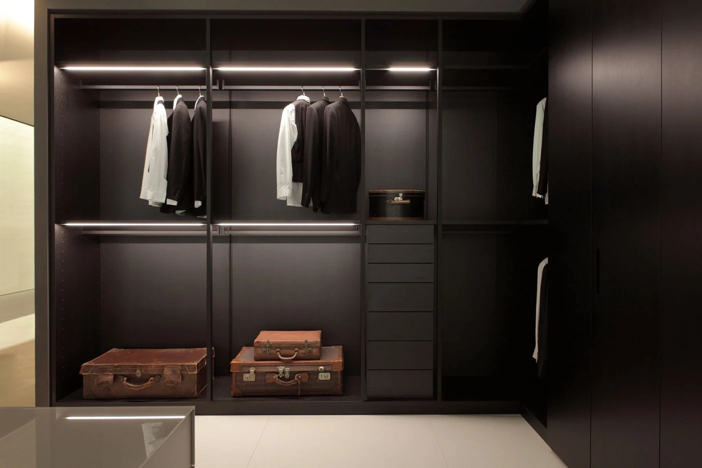A welcoming and cherished refuge, a place to rest and relax amidst the warmth of wood and the purity of Porro lacquer – the wardrobe has expanded to become a room in its own right, an American-style dressing room. Home furnishing has witnessed a return to the tenets of the past: wardrobes are moving into a new phase. Rather than purely functional and utilitarian spaces, they have become enjoyable areas that are continually growing in size. The dressing room is an intimate space where one can focus exclusively on oneself, where men can choose a suit and care for shoes and ties, and women can take pleasure in putting on make-up in front of the mirror.