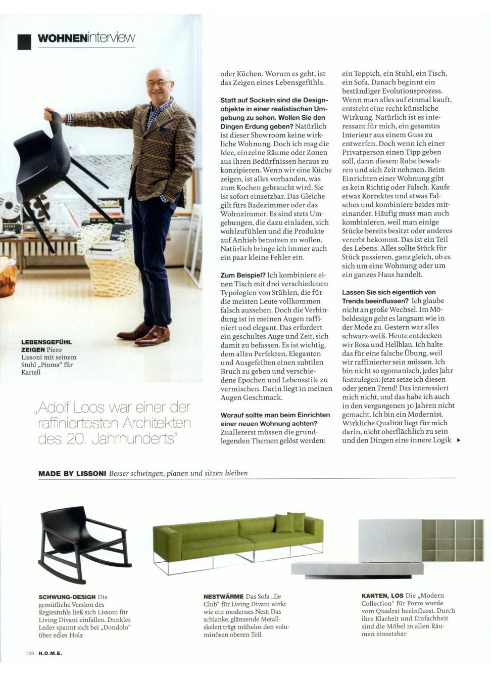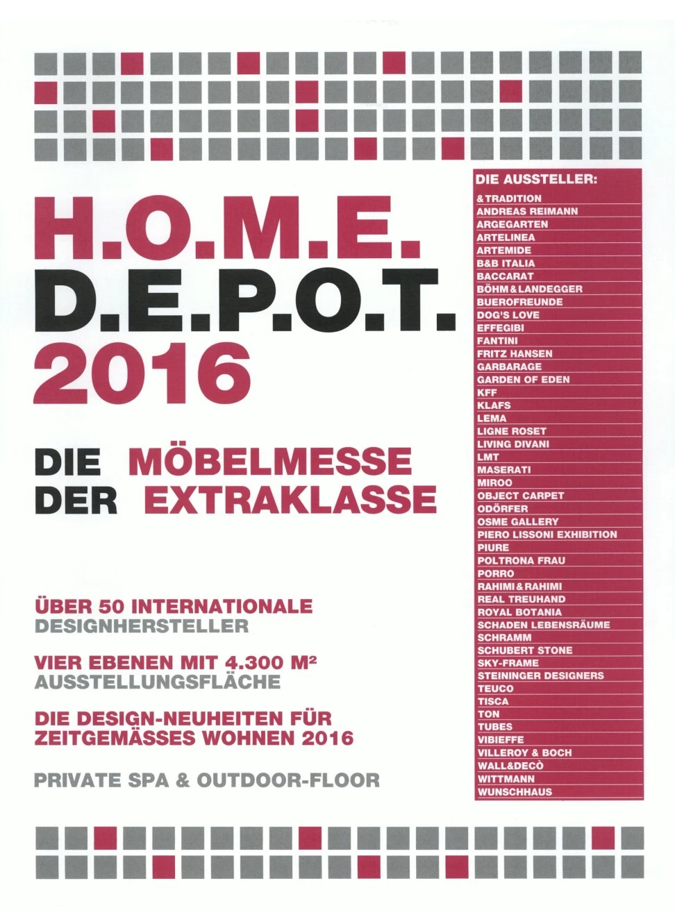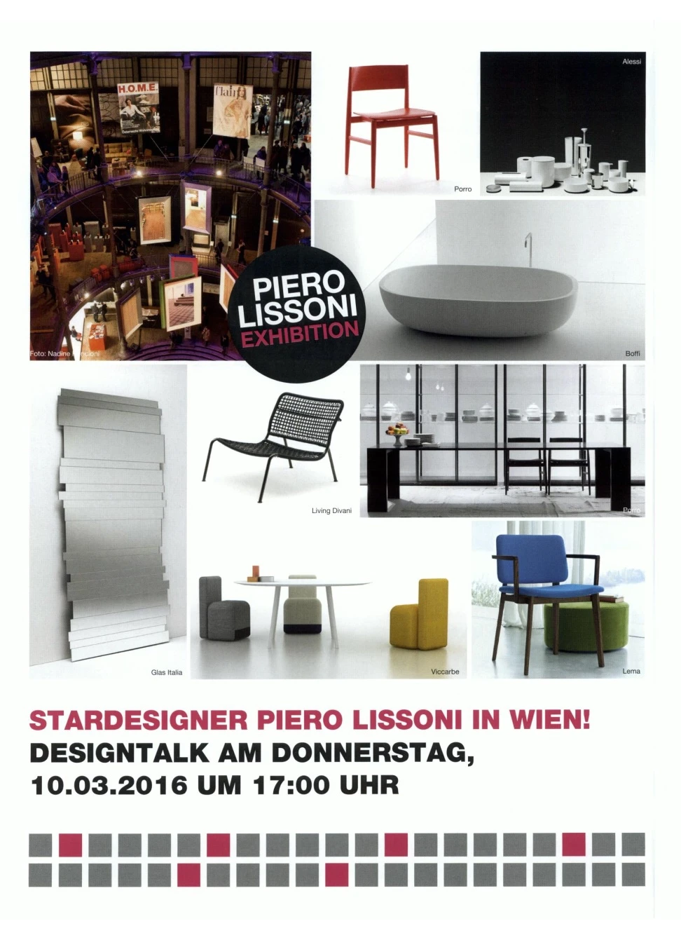The refined geometric style by Piero Lissoni, selected as a guest of honor of the 2016 edition of H.O.M.E. D.E.P.O.T., the annual event dedicated to the furniture world organized by the Austrian magazine H.O.M.E in Vienna.