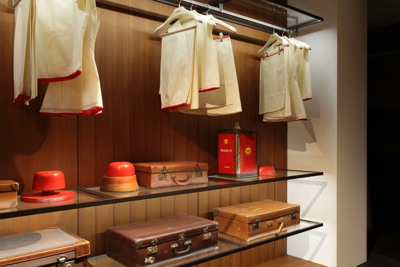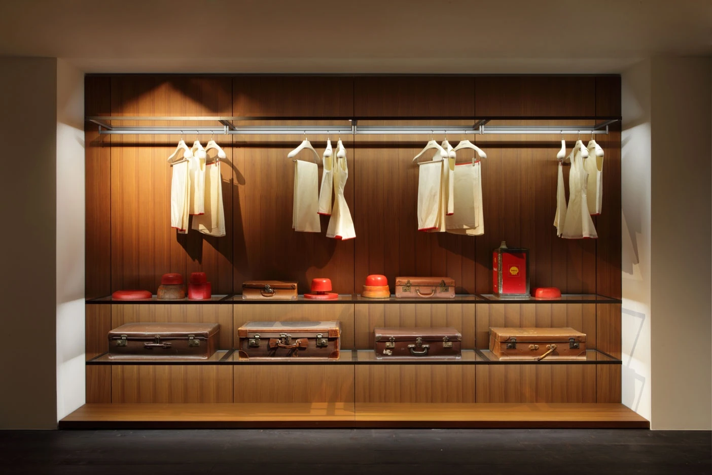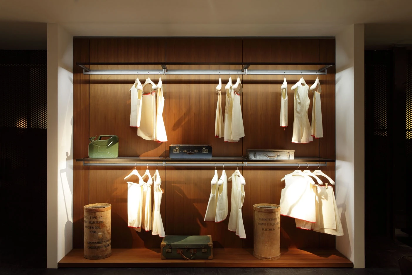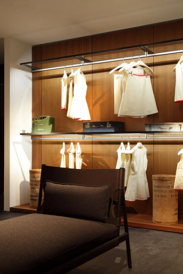 The journey continues in the first dressing room, a separate space, an inviting “chamber of desire”. Inside the consistent Storage Boiserie in heat treated tanne, the new daybeds Traveller offer an inviting place to rest.
