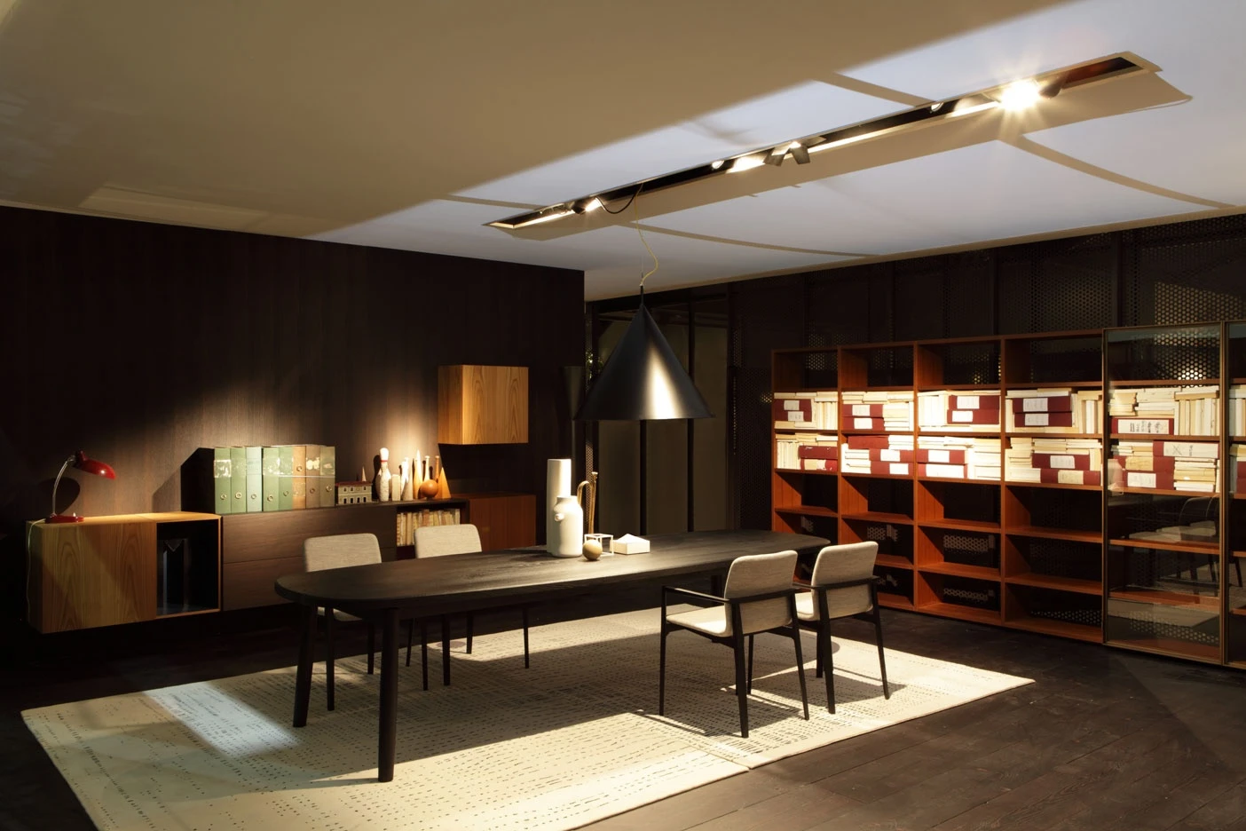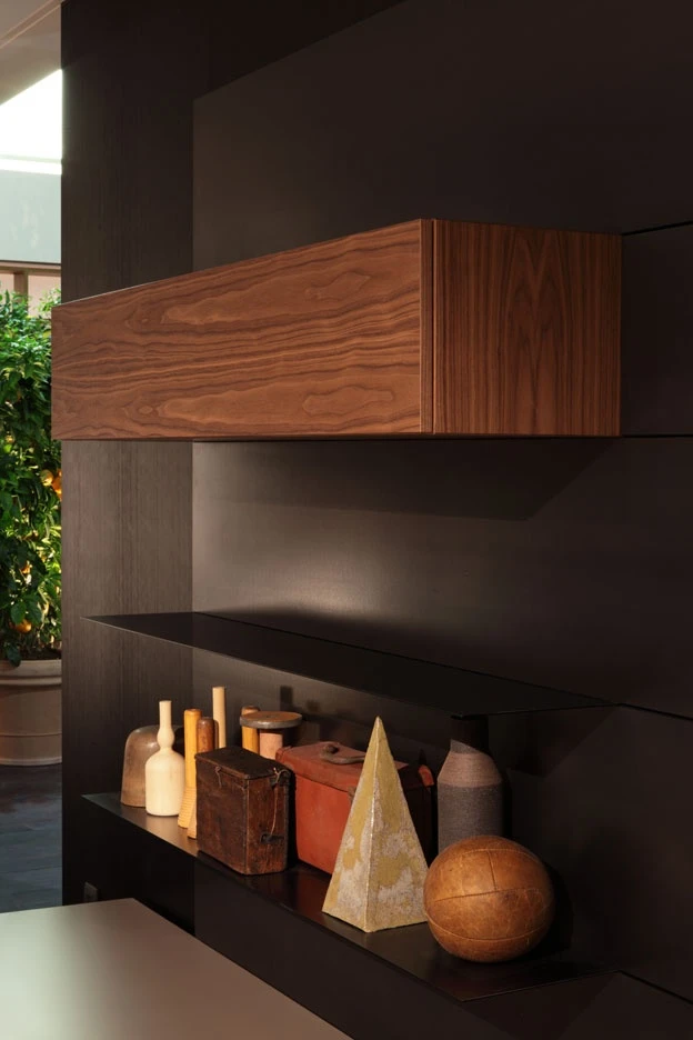 Wonderful black and brown shades, oxidized metals, transparency of glass and lively shades of wood covering walls and units: on the occasion of the Milan Furniture Fair, Porro opens its house full of fascination to visitors, signed by Piero Lissoni, a sequence of spaces exposed on the internal orange grove and furnished with pure but suggestive shapes.
