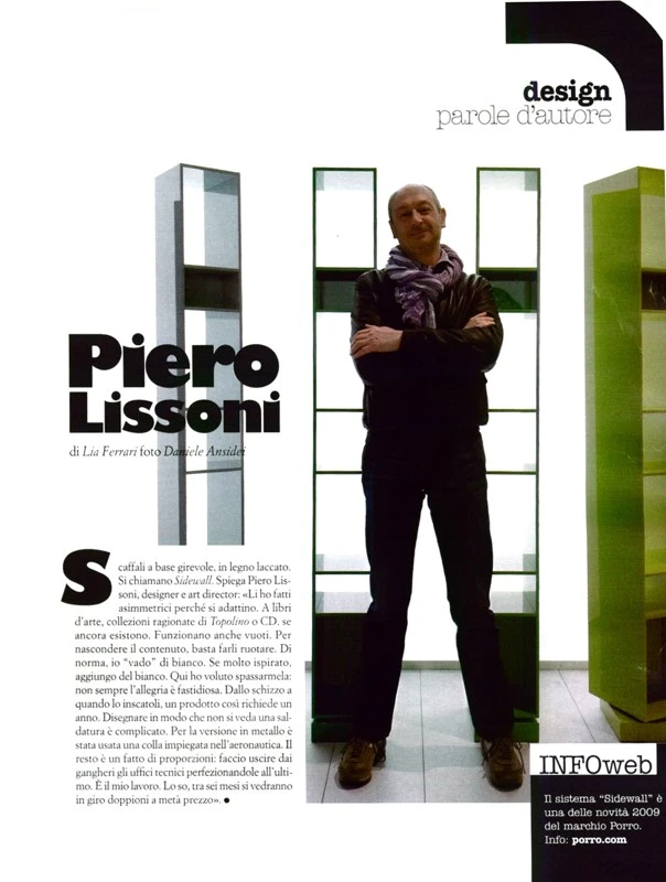 A strong design, wall mounted or free standing in the centre of the room, in just a few months it has appeared on the cover of German magazine H.O.M.E. and of Casa D, as well as receiving numerous mentions, such as in the interview conducted with Piero Lissoni by Io Donna magazine.
