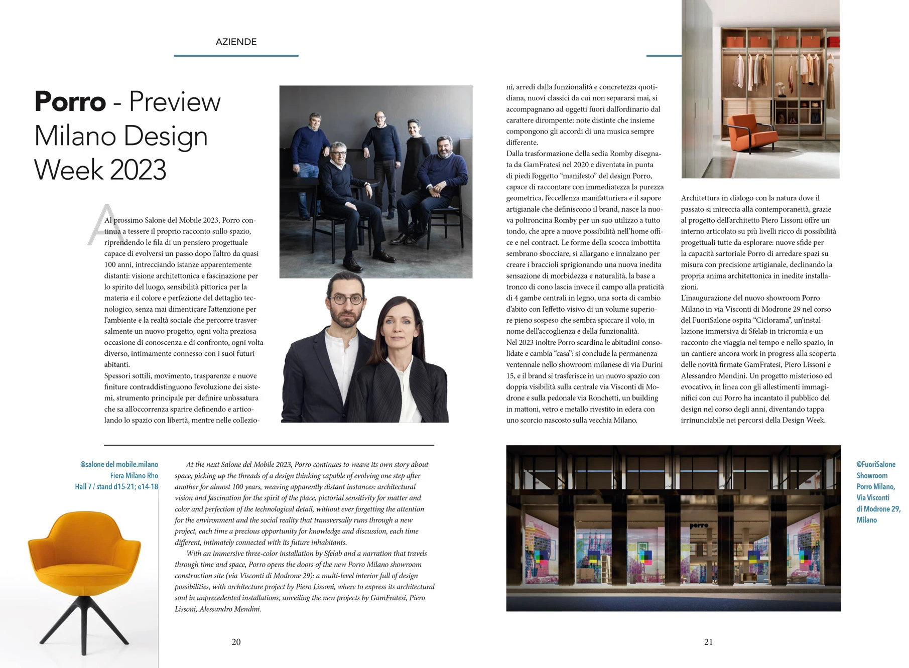 传统媒体和电子媒体。意大利新闻界和国际新闻界关于Porro的主要报道文章。从采访到产品评论,再到选择Porro品质的摄影棚现场。
